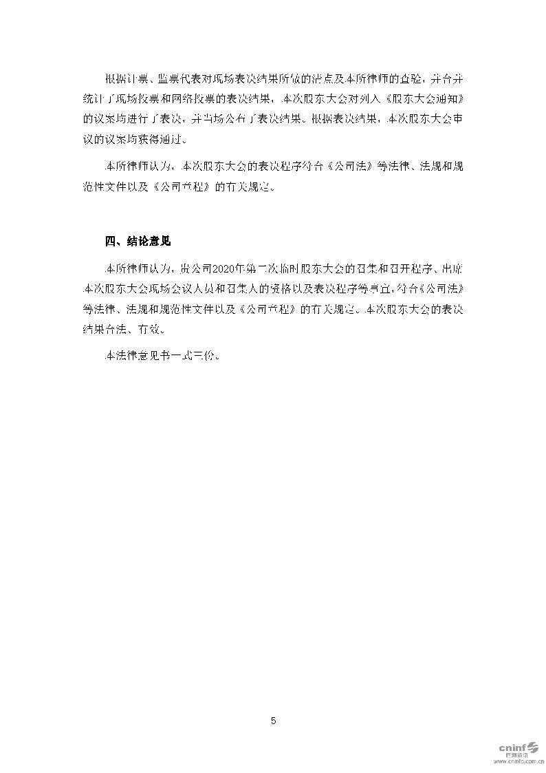 2020年第二次临时股东大会的法律意见书